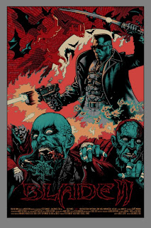The Devil's Backbone is easily my favorite Del Toro film as well as my favorite cinematic ghost story. But I gotta say that I'm a little underwhelmed by the Mondo print. It's pretty and I love Horkey's lettering, but it just doesn't feel like the film to me. I'm probably gonna give it a pass. I like Martin Ansin's Cronos print a little bit better, but again I'm not in love with it. So far, I've only scored the Blade 2 print from Mondo, having missed out on both of the Hellboys and the Pan's Labyrinth. I'm cool with that.